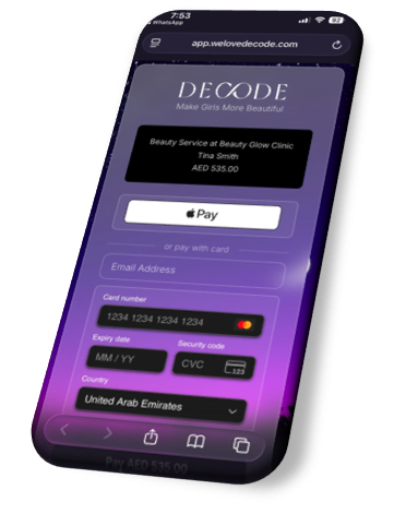 - DECODE is solely a payment technology intermediary and does not enter into any contract with your clients for the provision of beauty services
